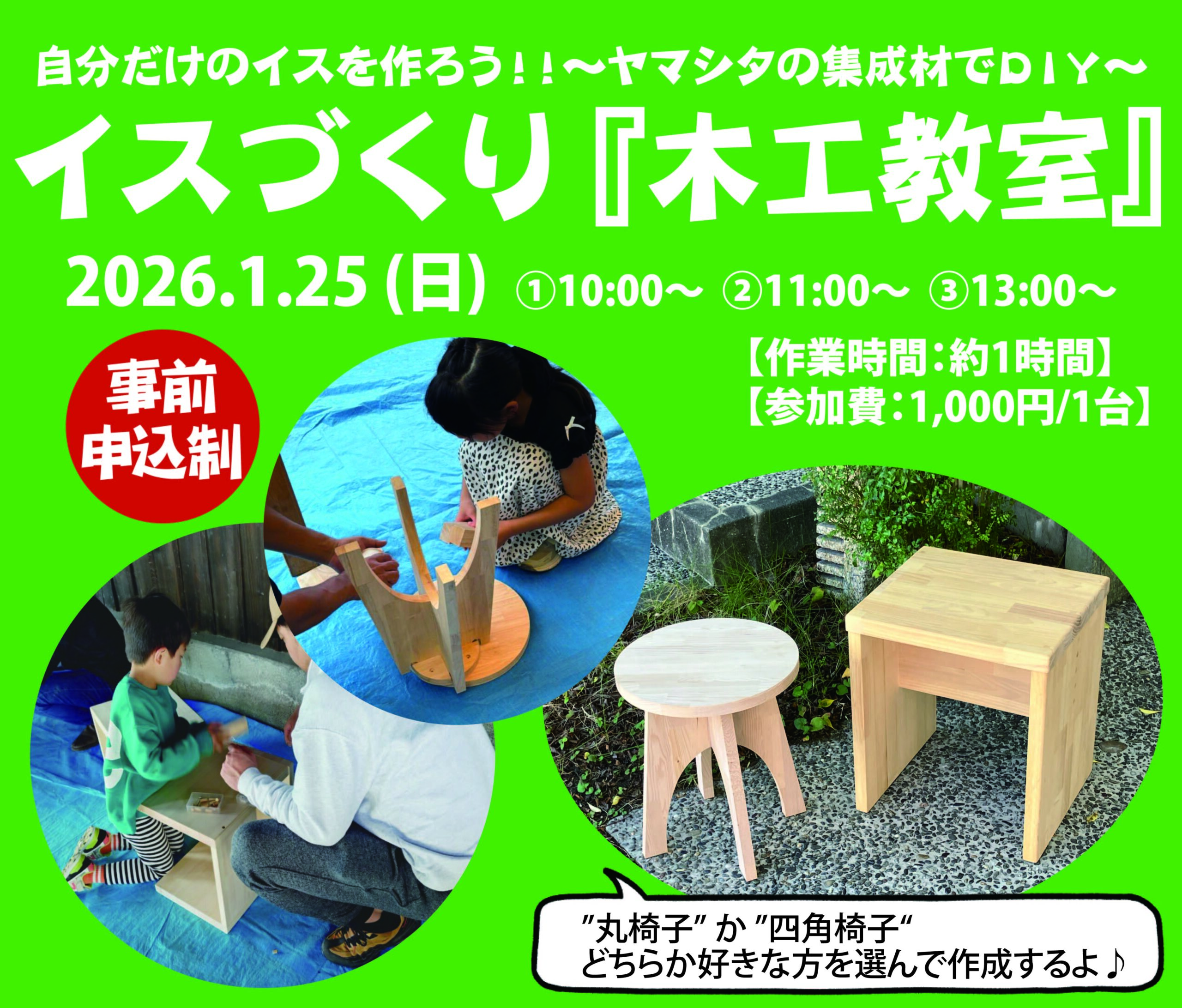 開催日: 2026年1月25日(日) 時 間: ①10:00~ ②11:00~ ③13:00~ 【作業時間:約1時間予定】 場 所: 北屋建設 藤崎倉庫(岡山市中区藤崎19-2) -