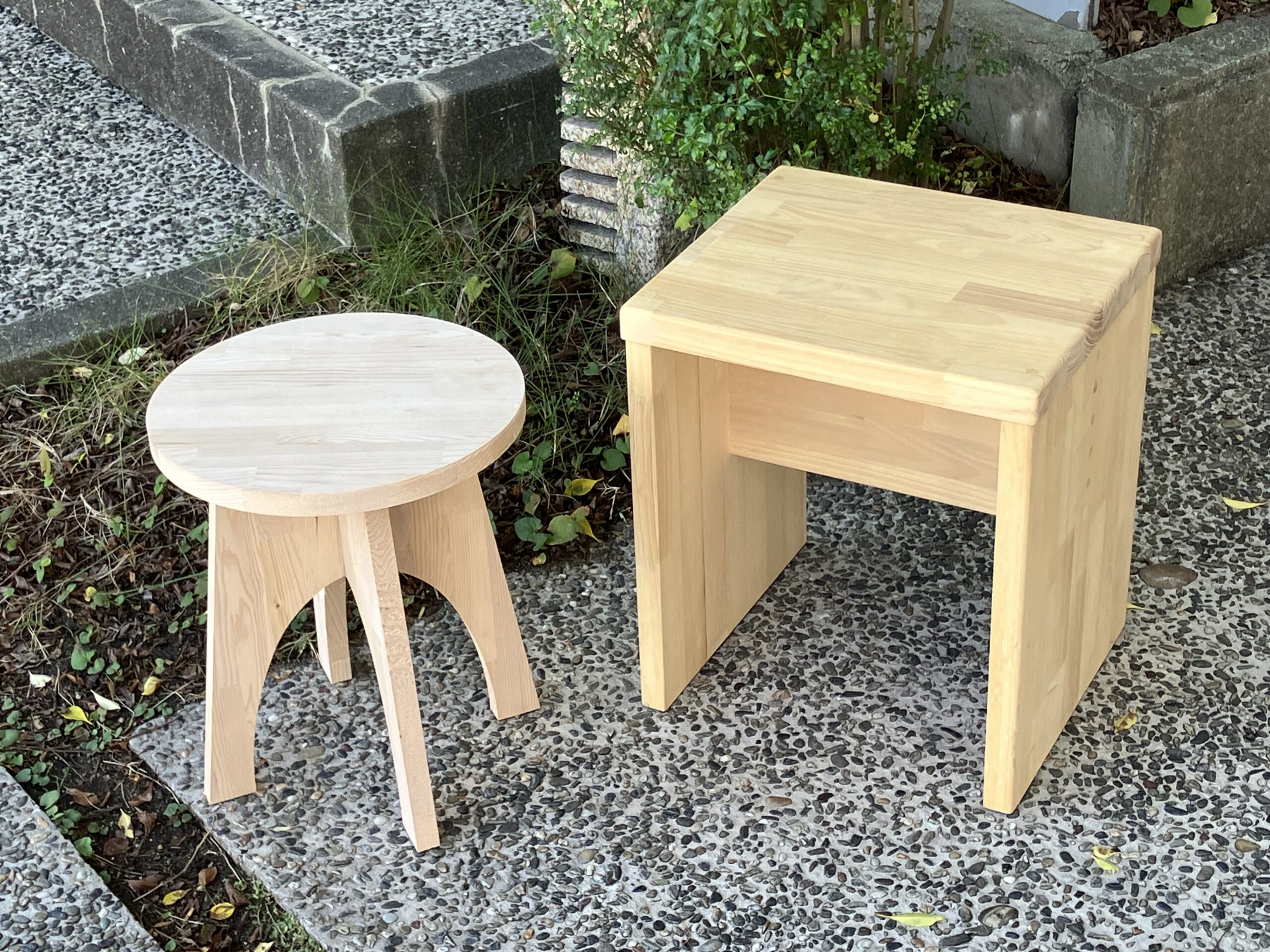 10月12日(日)の「端材市2025」で開催される「イスづくり木工教室」では、丸椅子と四角椅子のお好きな方どちらかを選べます♪