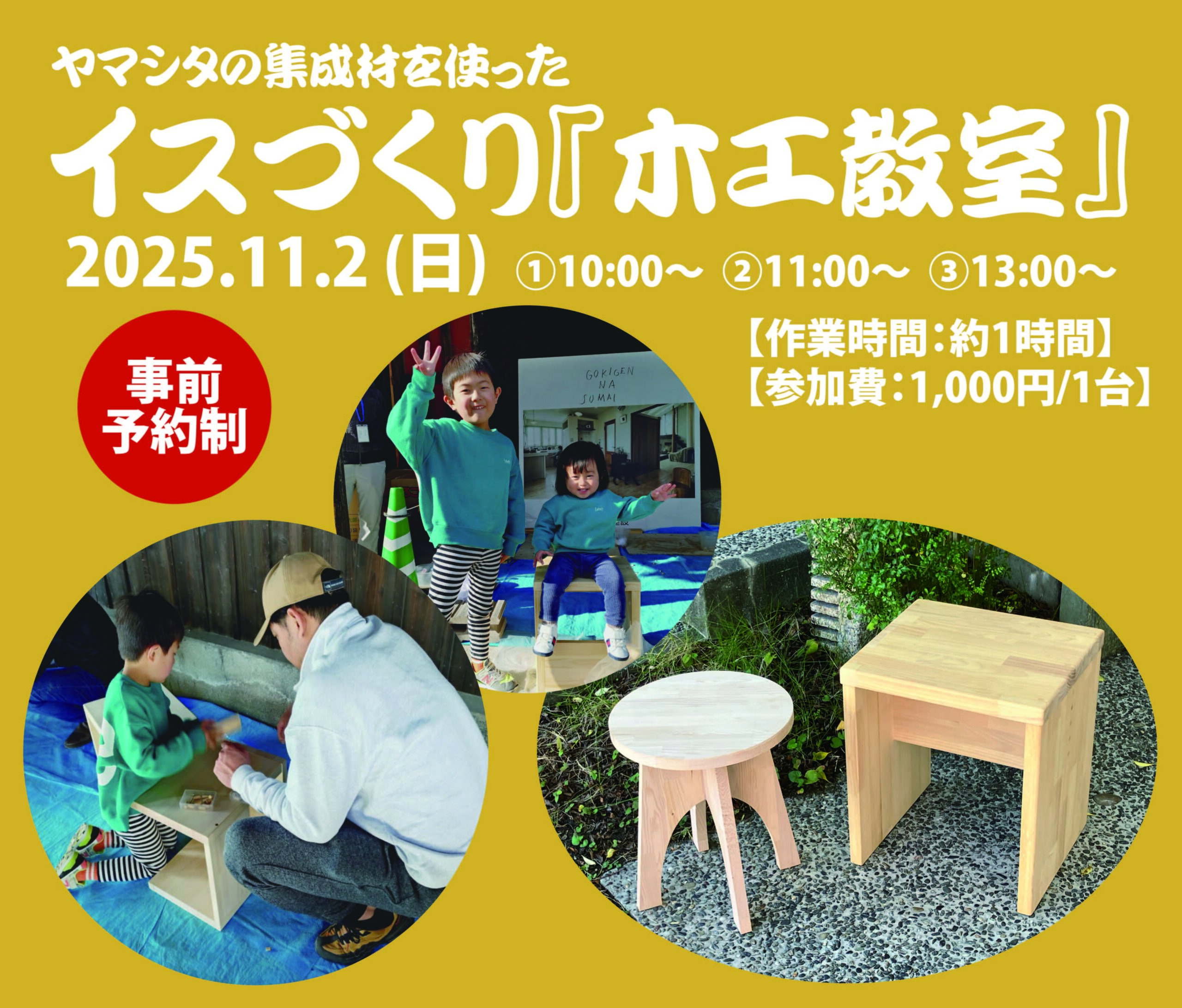 開催日: 2025年11月2日(日) 時 間: ①10:00~ ②11:00~ ③13:00~ 【作業時間:約1時間予定】 場 所: 北屋建設 藤崎倉庫(岡山市中区藤崎19-2) -