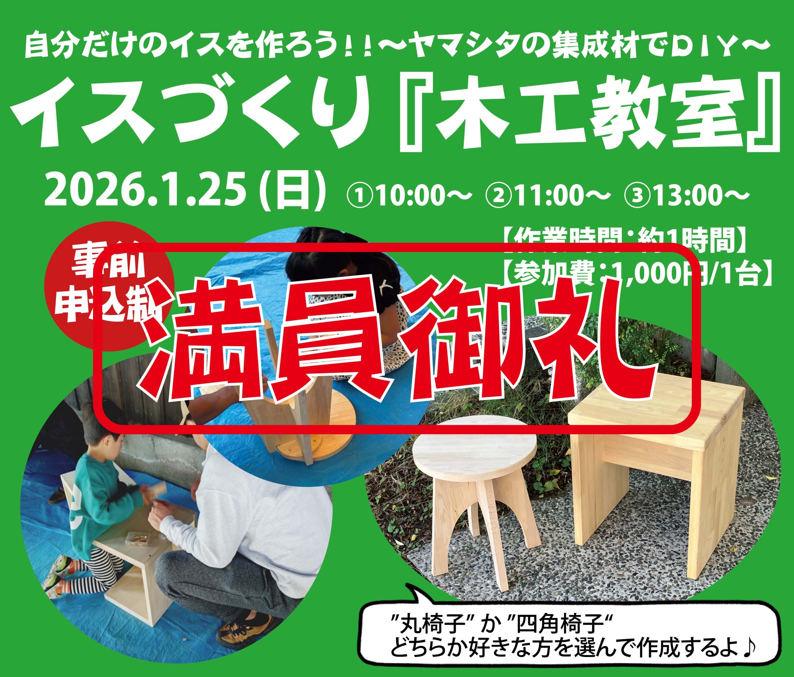 開催日: 2026年1月25日(日) 時 間: ①10:00~ ②11:00~ ③13:00~ 【作業時間:約1時間予定】 場 所: 北屋建設 藤崎倉庫(岡山市中区藤崎19-2) -