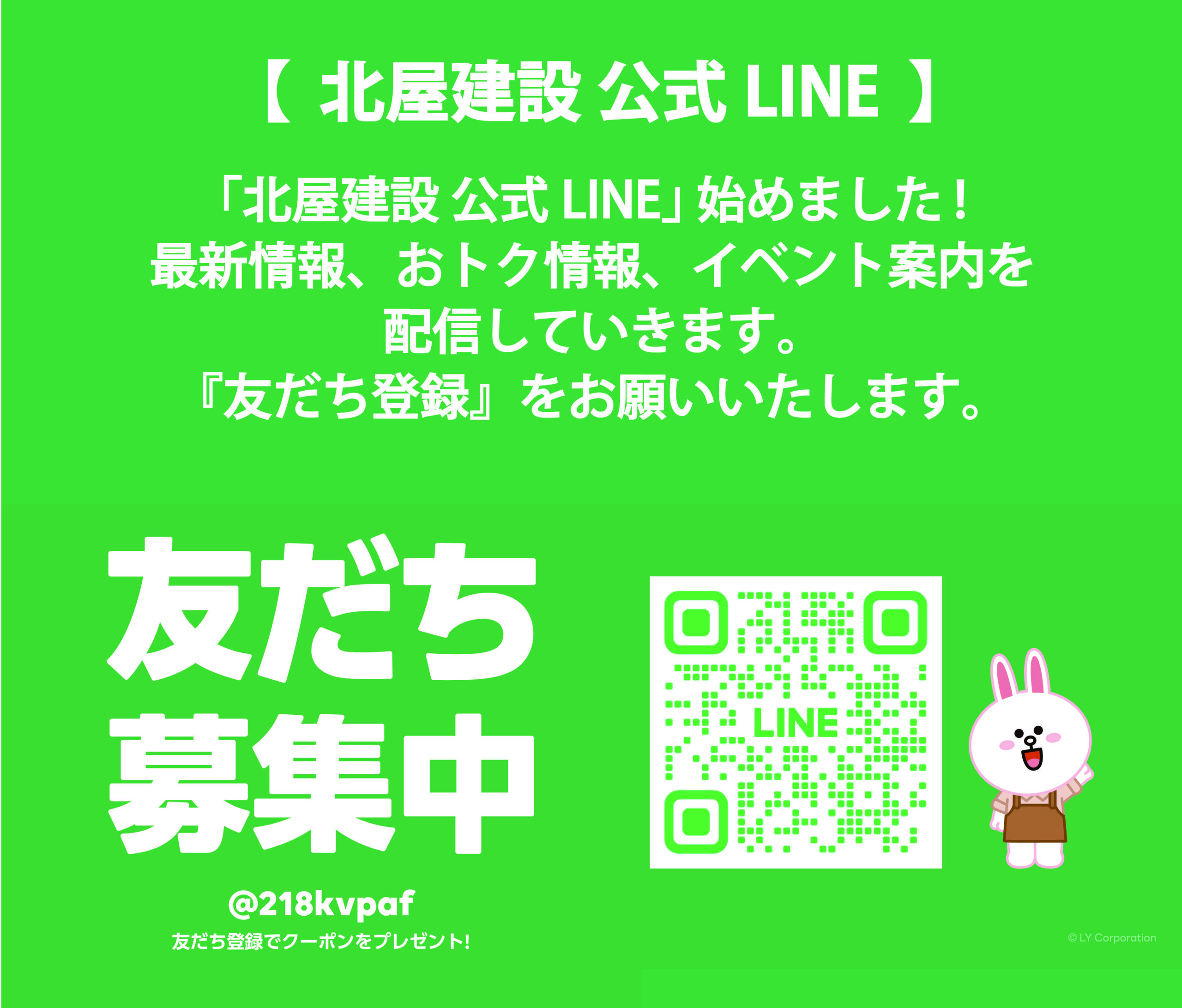 「北屋建設 公式LINE」始めました!