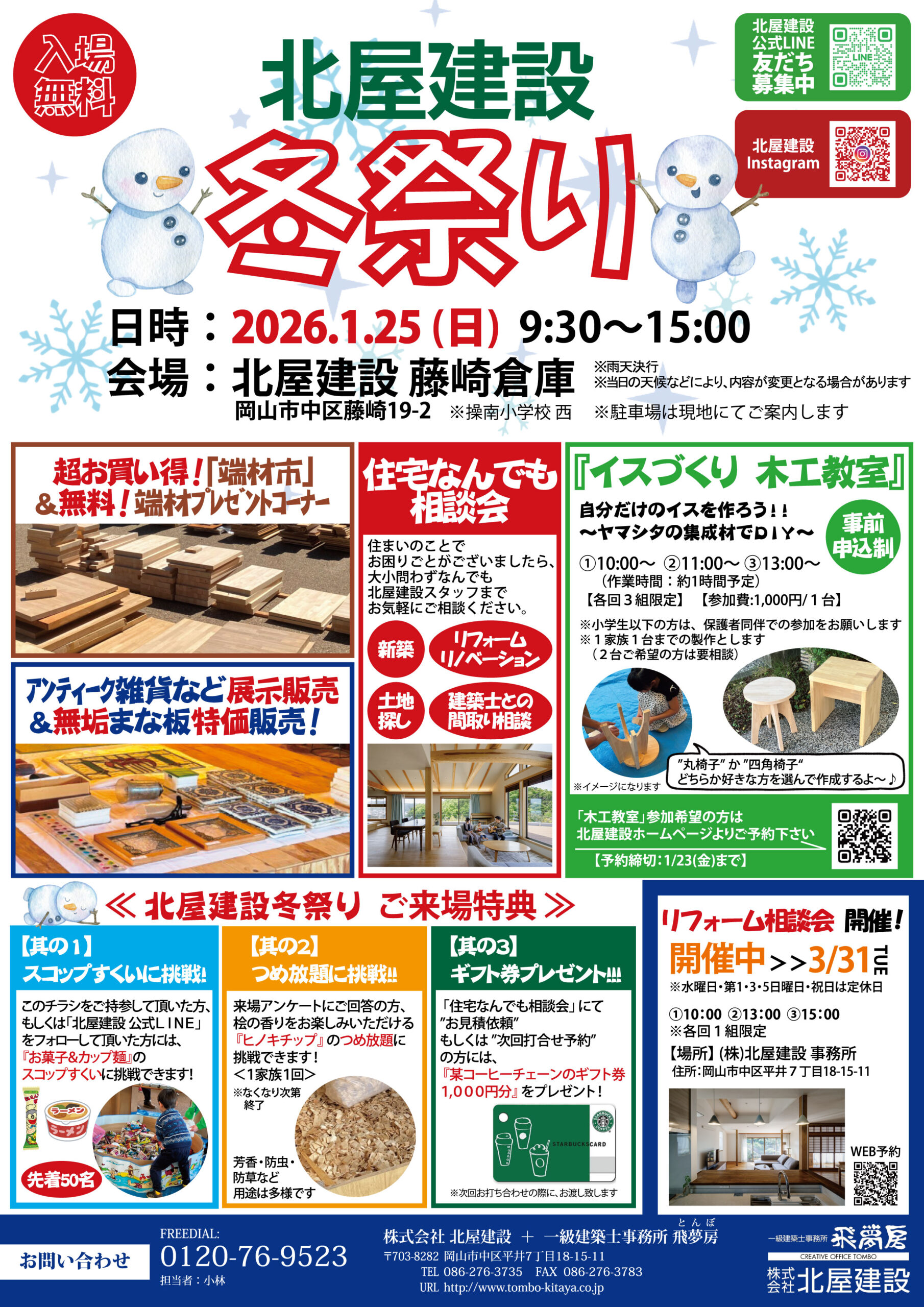 地域のみなさまへの感謝を込めて、今年も「北屋建設 冬祭り」を開催します!